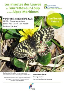 Le vendredi 14 novembre 2025, le Conservatoire d’espaces naturels de Provence-Alpes-Côte d’Azur vous invite à assister à la conférence « Les insectes des Lauves de Tourrettes-sur-Loup et des Alpes-Maritimes ».
